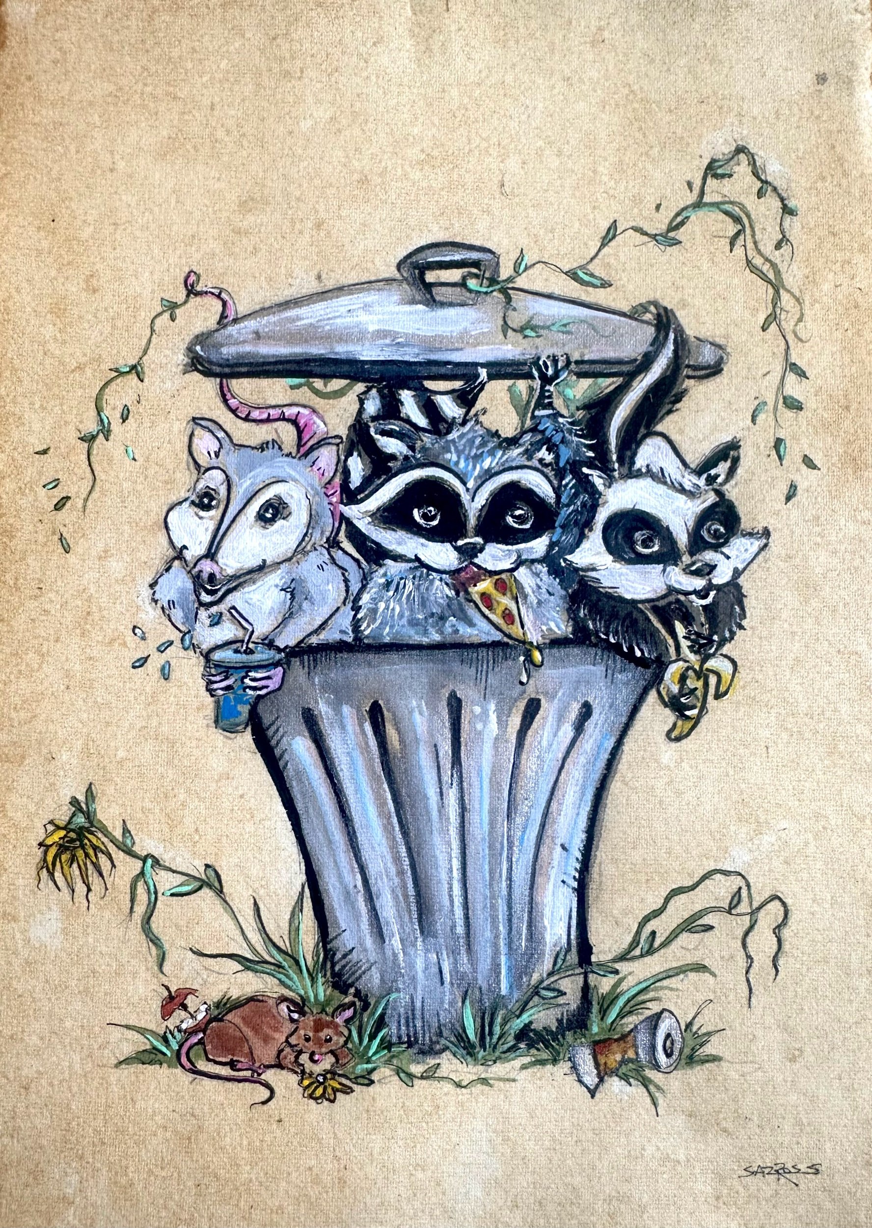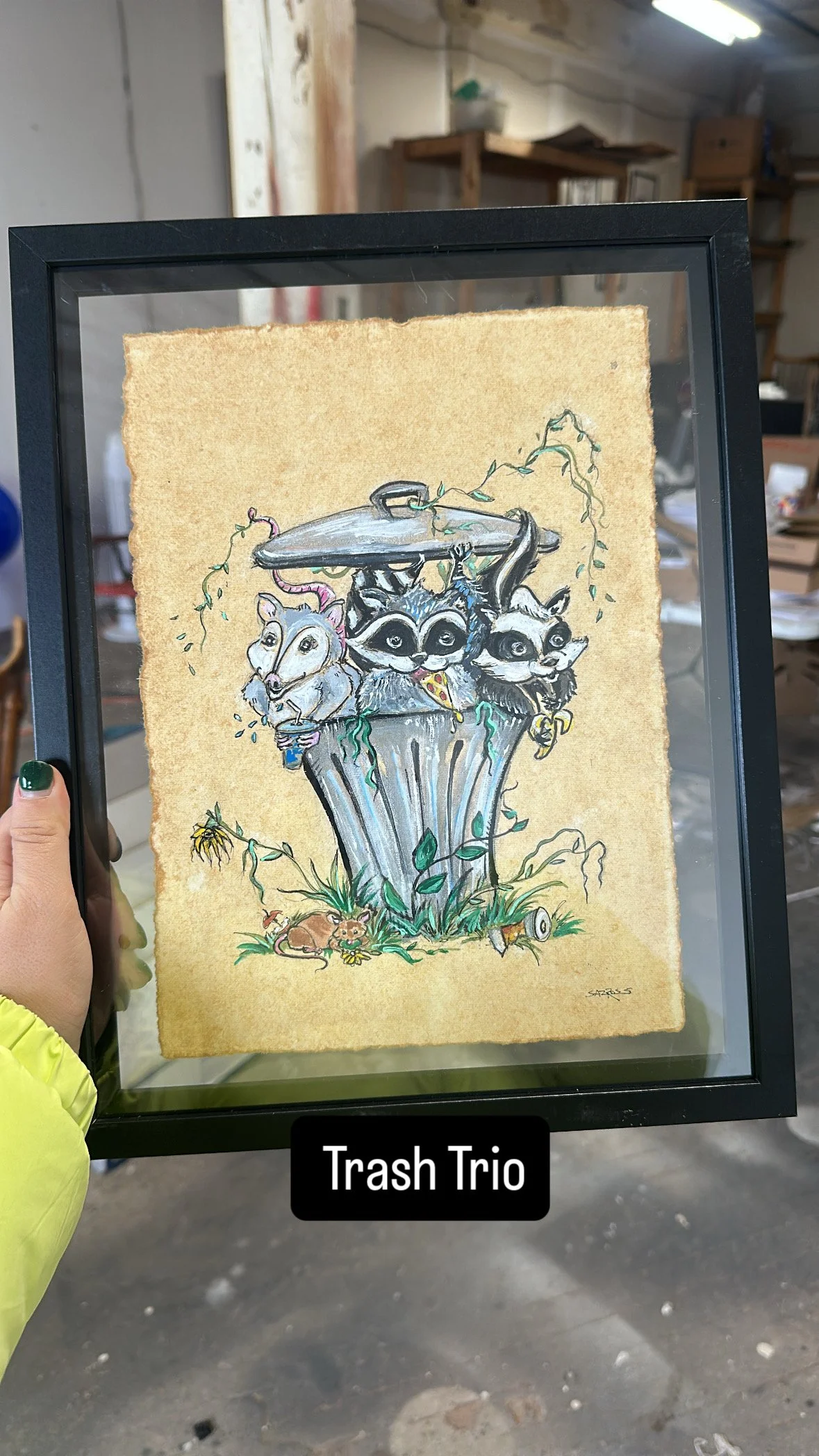 Shop Sazfactory › Trash Trio Image 1 of 2 Image 2 of 2 Trash Trio $250.00 9 X 12 inch print made with watercolor, pen, and acrylic on hand made / recycled cloth rag paper. Quantity: Add To Cart Added! 9 X 12 inch print made with watercolor, pen, and acrylic on hand made / recycled cloth rag paper.